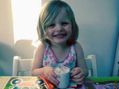 Lola sipping her Bambinoccino January 2014 |